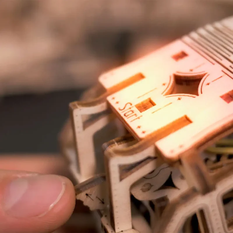 Napędzany precyzyjnym gumowym motorem, Dream Express obiecuje gładką jazdę za każdym razem. Starannie zaprojektowana deska rozdzielcza jest świadectwem skomplikowanych detali modelu. Gdy go nakręcasz, Ruchome tłoki ożywają, doskonale oddając istotę klasycznej lokomotywy. Klucz startowy służy jako serce tego arcydzieła, uruchamiając pociąg. Dźwignia startowa dodatkowo uzupełnia ogólną mechanikę, zapewniając płynne doświadczenie z zabawki. A dla tych, którzy marzą o dłuższych podróżach, dołączony jest fragment torów, gotowy do poszerzenia horyzontów twojego miniaturowego świata.