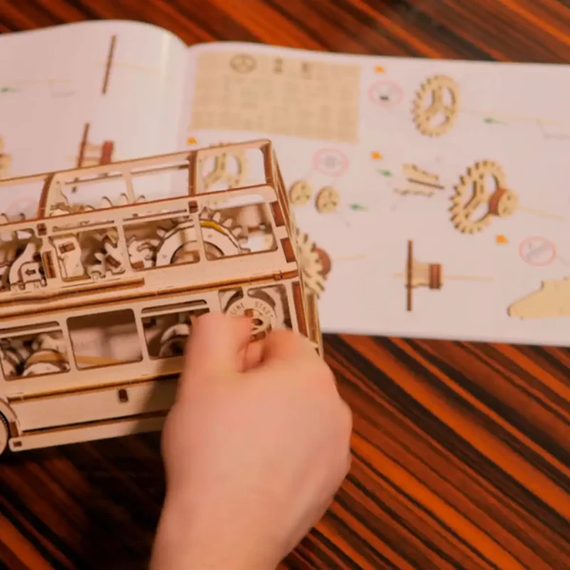 Rozpoczynając od tego Drewnianego Puzzle 3D, podróżuj po historycznych ulicach Londynu z naszym wyjątkowo wykonanym mechanicznym Londyńskim Autobusem. Wykonany z perfekcją, pozwala na praktyczne zgłębianie inżynierii, designu i historii.
